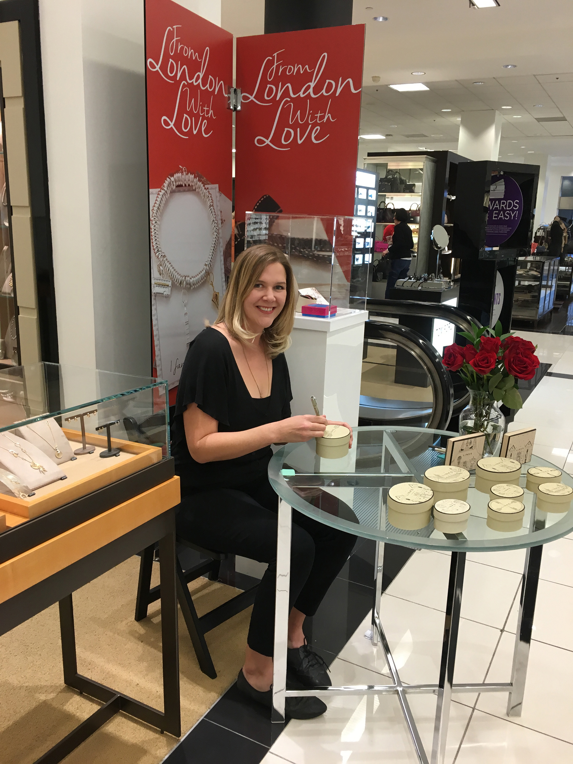 Custom illustrations on jewelry boxes done live in-store at Bloomingdale's